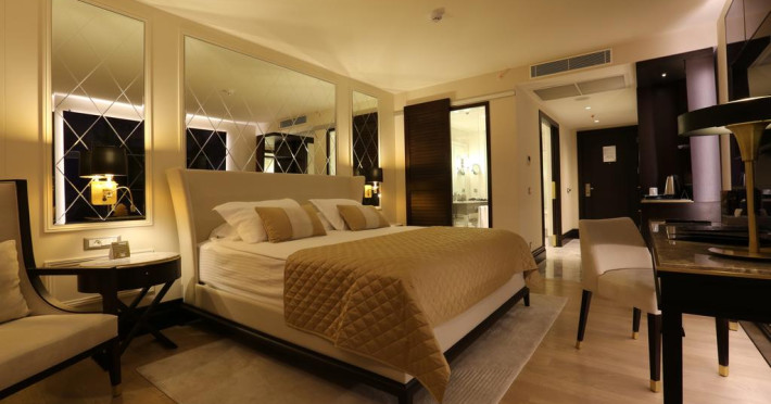 Camere elegante si moderne, dotate cu: aer conditionat, televizor prin satelit, telefon, seif (contra cost), minibar (contra cost), baie cu dus sau cada si uscator de par, balcon.