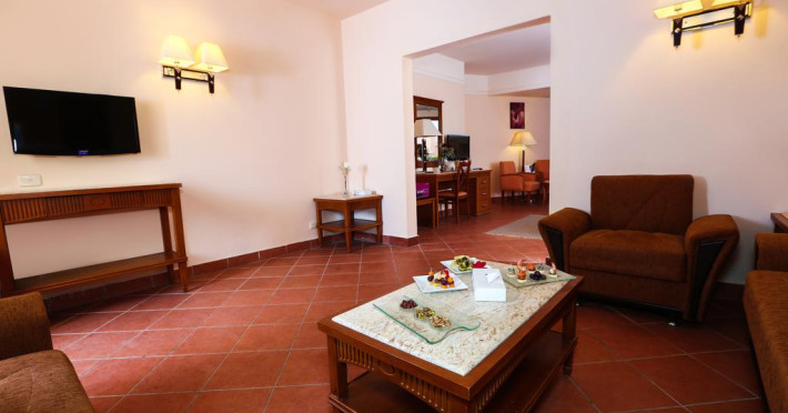 Unele camere au balcon cu vedere la grădină sau la piscină. Fiecare cameră dispune de minibar și cană-fierbător. Oaspeții pot solicita serviciul de room service pentru a servi masa sau diverse băuturi. Camerele confortabile de la Charmillion Gardens Aquapark au pardoseală de gresie/ marmură, aer condiționat, Tv cu canale prin satelit și seif. În camere există baie cu cadă sau duș ce are în dotare foehn și articole de toaletă gratuite. Curățenia in cameră se face zilnic. Toate camerele spațioase de la Charmillion Gardens Aquapark au canapea în living, ceea ce oferă un plus de confort. Proprietatea oferă camere pentru familie cu o suprafață mai mare și un număr mai mare de paturi față de cele standard. Se pot rezerva de asemenea camere pentru nefumători.