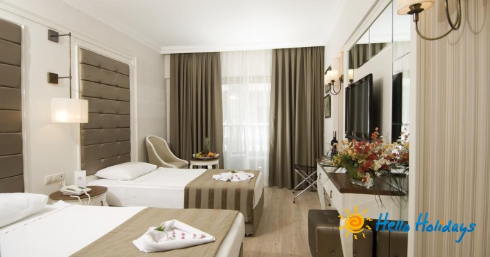 Camerele luminoase de la Aydinbey sunt decorate cu bun gust, în culori calde. Toate includ un televizor, aer condiţionat şi un minibar. Toate camerele au un balcon cu vedere la mare, la piscină sau la grădină.