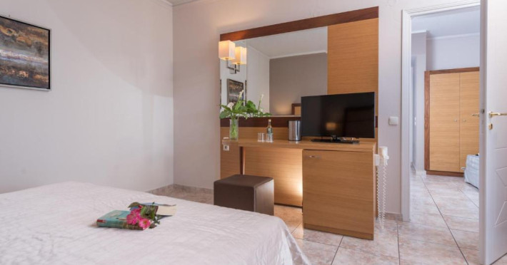 Sunt disponibile 358 camere. Unele camere au balcon cu vedere la mare sau la piscină. În camere există baie cu cadă sau duș ce are în dotare foehn și articole de toaletă gratuite. Oaspeții au la dispoziție serviciul de room service pentru a servi masa sau diverse băuturi. Camerele de la Chc Athina Palace Resort & Spa sunt dotate cu aer condiționat, Tv cu canale prin satelit și seif. Curățenia in cameră se face zilnic. Proprietatea oferă camere pentru familie cu o suprafață mai mare și un număr mai mare de paturi față de cele standard.