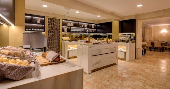 Restaurantul hotelului are vedere la canal. Dimineata, oaspetii pot savura un mic dejun tip bufet cu preparate calde si reci. Seara se servesc specialităti venetiene, precum si mancăruri internationale insotite de o selectie variată de vinuri.