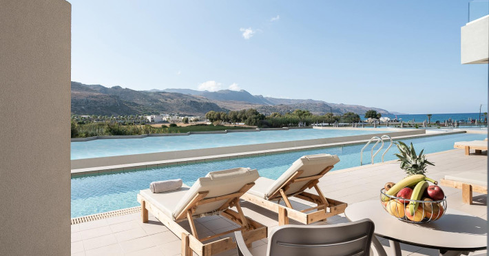 CHC Galini Palace is ready to open its gates to the guests in 2020. Its modern facilities expand over an area of 50. 000m2, which in combination with the high quality services, not only respond to all guests' needs, but also offer them unique and unforgettable holiday experiences. Location: Hotel is located within a walking distance of 50m from the beautiful beach of the area Kolimbari and only 300m away from the city center. Accommodation: The hotel CHC Galini Palace 5* consists of 120 luxurious rooms offering a fantastic view over the Kolimbari Bay, 40 of which have a sharing pool and 8 of which are VIP rooms with a private pool. Facilities: The hotel offers a main pool of 3. 000m2, 2 restaurants, 2 bars, 1 a la carte restaurant, a playground, a gym, a sauna and a hammam.The following services are with extra charge: car and motorbike rentals, excursions, shuttle services, iron and laundry service.CHC Galini Palace is ready to open its gates to the guests in 2020. Its modern facilities expand over an area of 50. 000m2, which in combination with the high quality services, not only respond to all guests' needs, but also offer them unique and unforgettable holiday experiences. Location: Hotel is located within a walking distance of 50m from the beautiful beach of the area Kolimbari and only 300m away from the city center. Accommodation: The hotel CHC Galini Palace 5* consists of 120 luxurious rooms offering a fantastic view over the Kolimbari Bay, 40 of which have a sharing pool and 8 of which are VIP rooms with a private pool. Facilities: The hotel offers a main pool of 3. 000m2, 2 restaurants, 2 bars, 1 a la carte restaurant, a playground, a gym, a sauna and a hammam.The following services are with extra charge: car and motorbike rentals, excursions, shuttle services, iron and laundry service.