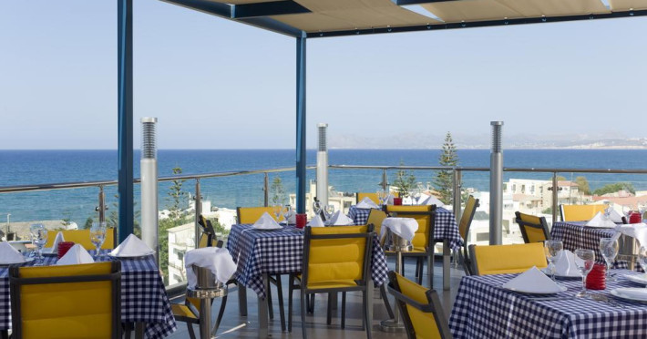 La Galini Sea View oaspeții au la dispoziție 3 restaurante unde pot savura mâncăruri delicioase, în stil bufet sau à la carte. Preparate din bucătăria internațională și italiană sunt oferite zilnic. Masa poate fi servită atât în interior, cît si în aer liber, pe terasă, în funcție de vreme. 2 baruri, dintre care unul la piscină, sunt disponibile cu o ofertă variată de băuturi răcoritoare și alcoolice. Pentru cei cu anumite nevoi de nutriție, Galini Sea View oferă meniuri pentru diete speciale.