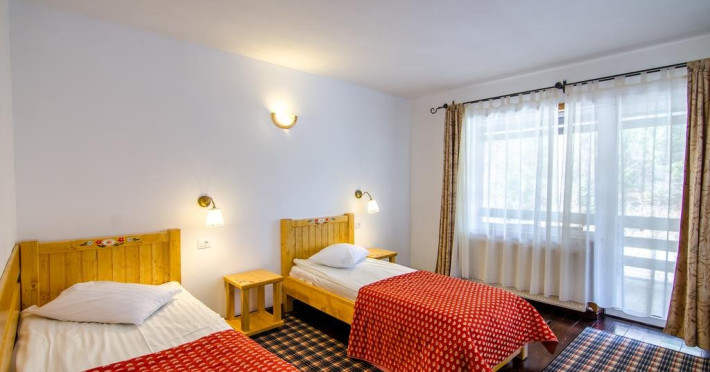 14 camere duble, cu pat matrimonial, televizor si baie proprie cu cada