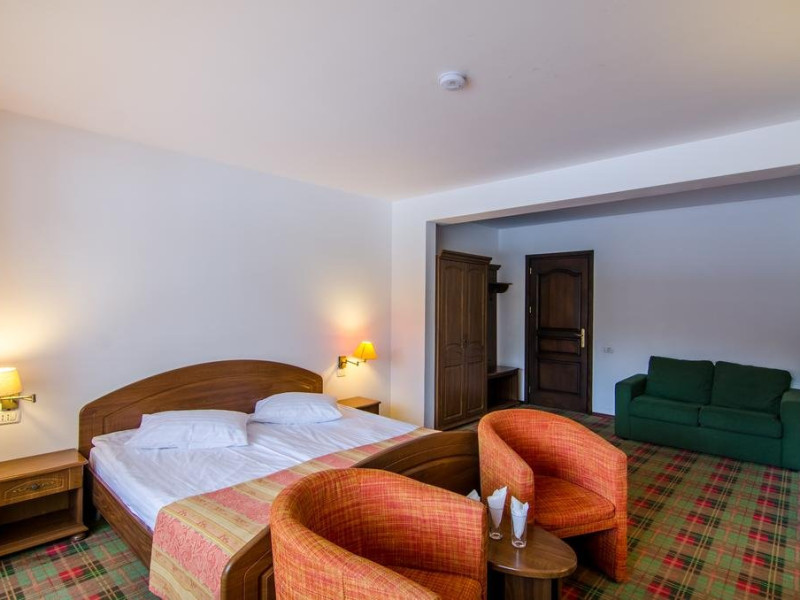 living cu bar si terasa pentru siesta si pauza de fumat camerele au terase spatioase; piscina interioara, atmosfera agreabila, ferestre luminoase, terasa pentru baile de soare; Jacuzzi si sauna uscata.