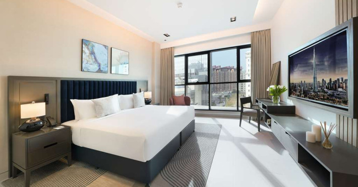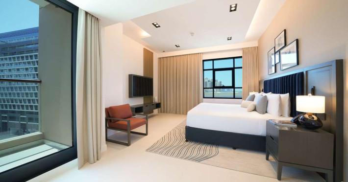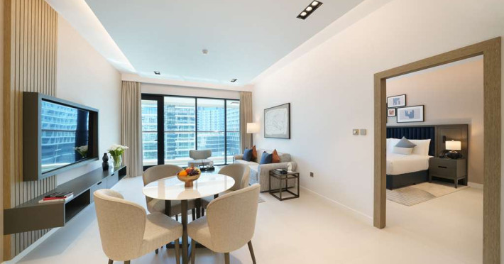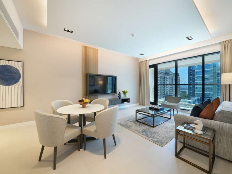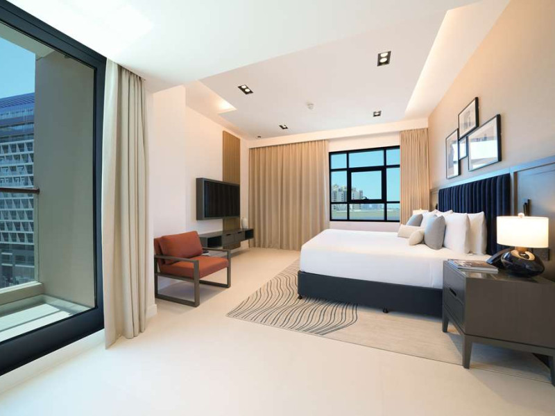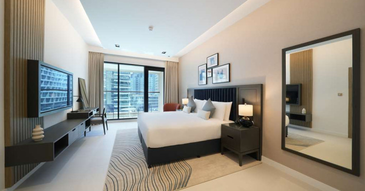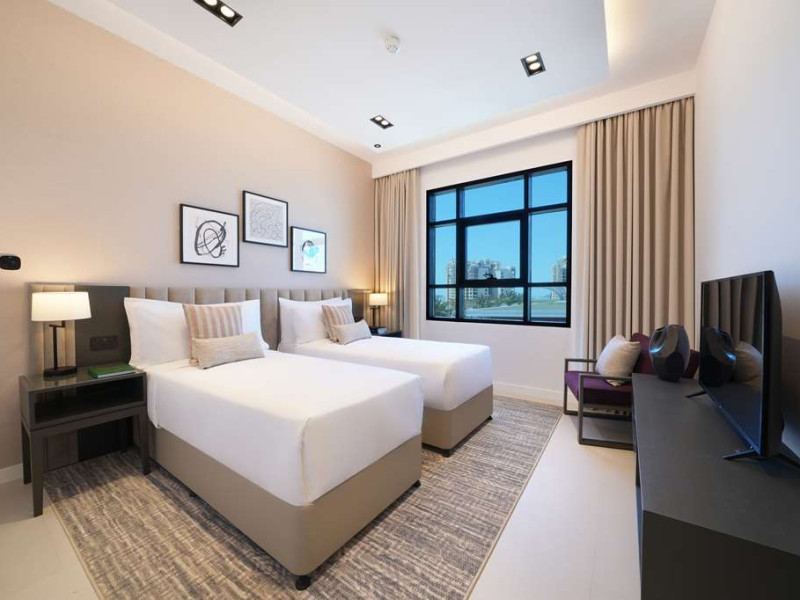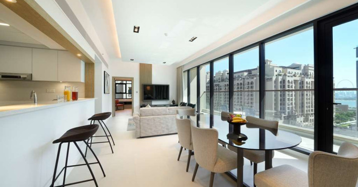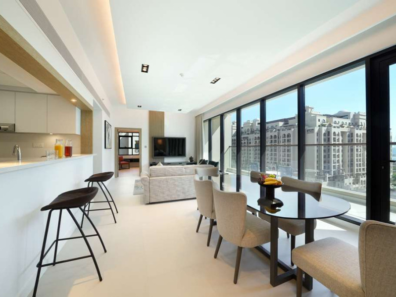 Experience unparalleled luxury at Cheval Maison The Palm Dubai an extraordinary all-apartment boutique property nestled on the iconic Palm Jumeirah. With 131 contemporary apartments this exquisite residence offers a harmonious blend of freedom flexibility and ample space allowing you to craft your very own personal sanctuary while still immersing yourself in the vibrant tapestry of this unique city.Indulge in the choice of 1 2 and 3-bedroom apartments along with a breathtaking 3-bedroom penthouse each meticulously designed to cater to your every need. These opulent abodes provide the perfect setting for a sun-soaked getaway or an extended sojourn. Stylishly adorned with fully equipped kitchens these apartments offer a seamless fusion of functionality and elegance. Most units boast their own private terrace or balcony inviting you to unwind and witness the mesmerizing spectacle of the sun bidding farewell to the iconic Dubai skyline. For those seeking a more active escape a 24-hour gym and an outdoor rooftop pool await providing rejuvenating options for your leisurely pursuits.Situated within the esteemed Golden Mile residential complex located on the western trunk of Palm Jumeirah these apartments serve as an ideal base for exploring the wonders of the city. Complimentary underground parking ensures convenience for guests with their own transportation. Merely a one-minute walk from the apartments the Palm Monorail unveils a gateway to the key landmarks of Palm Jumeirah seamlessly connecting you to Nakheel Mall. This transport hub offers effortless access to the metro system facilitating your exploration of the wider city. Should you desire to remain within close proximity the Nakheel Mall awaits boasting a stunning array of 300 retail outlets. Additionally world-class attractions such as AquaVenture Waterpark and Pointe Palm are just minutes away beckoning you to embark on unforgettable adventures.Immerse yourself in the epitome of lavish living at Cheval MaisExperience unparalleled luxury at Cheval Maison The Palm Dubai an extraordinary all-apartment boutique property nestled on the iconic Palm Jumeirah. With 131 contemporary apartments this exquisite residence offers a harmonious blend of freedom flexibility and ample space allowing you to craft your very own personal sanctuary while still immersing yourself in the vibrant tapestry of this unique city.Indulge in the choice of 1 2 and 3-bedroom apartments along with a breathtaking 3-bedroom penthouse each meticulously designed to cater to your every need. These opulent abodes provide the perfect setting for a sun-soaked getaway or an extended sojourn. Stylishly adorned with fully equipped kitchens these apartments offer a seamless fusion of functionality and elegance. Most units boast their own private terrace or balcony inviting you to unwind and witness the mesmerizing spectacle of the sun bidding farewell to the iconic Dubai skyline. For those seeking a more active escape a 24-hour gym and an outdoor rooftop pool await providing rejuvenating options for your leisurely pursuits.Situated within the esteemed Golden Mile residential complex located on the western trunk of Palm Jumeirah these apartments serve as an ideal base for exploring the wonders of the city. Complimentary underground parking ensures convenience for guests with their own transportation. Merely a one-minute walk from the apartments the Palm Monorail unveils a gateway to the key landmarks of Palm Jumeirah seamlessly connecting you to Nakheel Mall. This transport hub offers effortless access to the metro system facilitating your exploration of the wider city. Should you desire to remain within close proximity the Nakheel Mall awaits boasting a stunning array of 300 retail outlets. Additionally world-class attractions such as AquaVenture Waterpark and Pointe Palm are just minutes away beckoning you to embark on unforgettable adventures.Immerse yourself in the epitome of lavish living at Cheval Mais