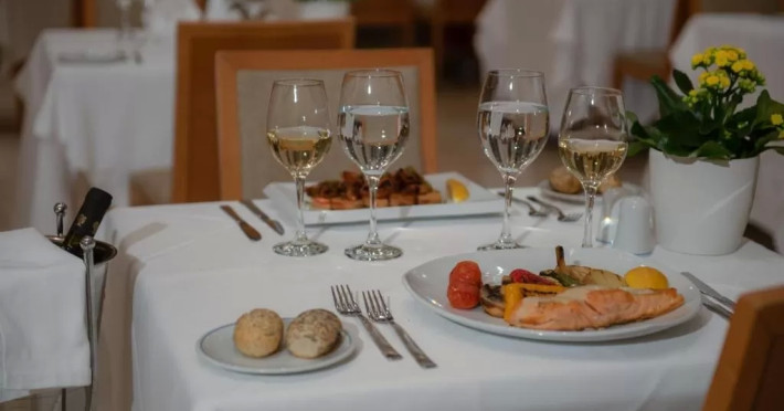 La Chios Chandris Hotel oaspeții au la dispoziție un restaurant care servește mâncare à la carte. Preparate din bucătăria internațională așteaptă să fie degustate în fiecare zi la micul dejun, prânz și cină. Masa poate fi servită atât în interior, cît si în aer liber, pe terasă, în funcție de vreme. 2 baruri, dintre care unul la piscină, sunt disponibile cu o ofertă variată de băuturi răcoritoare și alcoolice.