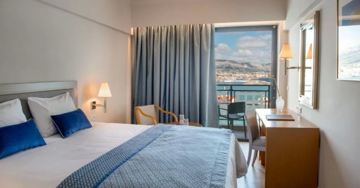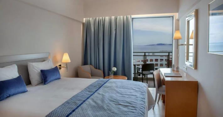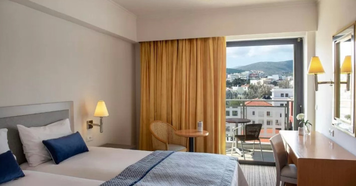 Sunt disponibile 148 camere. Unele camere cu balcon cu vedere la oraș. Fiecare cameră dispune de minibar. Oaspeții pot solicita serviciul de room service pentru a servi masa sau diverse băuturi. Camerele de la Chios Chandris Hotel sunt dotate cu aer condiționat, Tv cu canale prin satelit și seif. În camere există baie cu foehn și articole de toaletă gratuite.