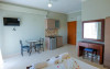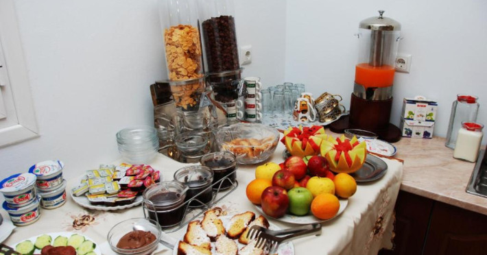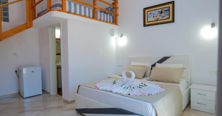 This pensiune găzduiește un restaurant care servește preparate din bucătăria grecească și italiană.