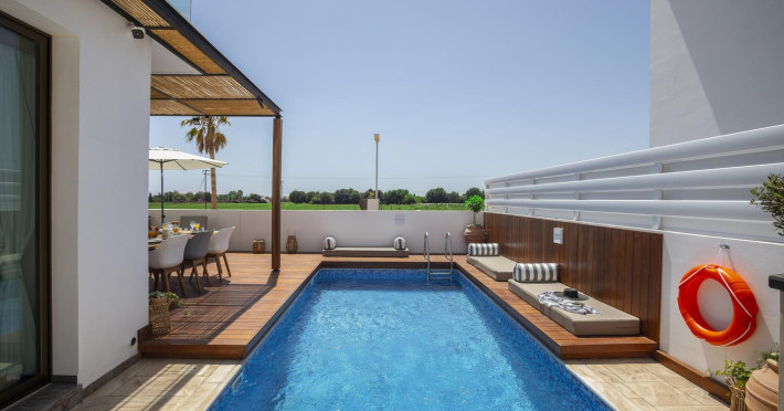 The luxury Villa is located in the Levanda Villas Complex in Protaras and offers a private swimming pool, a living room, a fully equipped kitchen and an outdoor patio with dining table, sunbeds and umbrellas. The villa includes a master bedroom with ensuite bathroom with shower, and 2 bedrooms. Residents of Chris Le Mare Villa can use all facilities of Louis St Elias Resort & Waterpark.Datorita dinamicitatii domeniului disponibilitatea ofertelor se modifica de la un moment la altul. De aceea ofertele sunt valabile in limita locurilor disponibile. Agentia nu este responsabila pentru eventualele neconcordante care pot aparea intre informatiile privind tarifele si alte detalii din site si informatiile primite in agentie. In aceste cazuri vor avea prioritate, intotdeauna, informatiile primite in agentie.