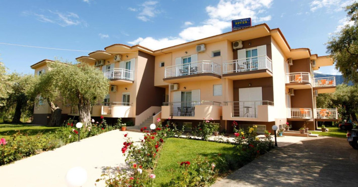 Chrisa Hotel pune la dispozitia oaspetilor urmatoarele facilitati: piscina exterioara, sezlonguri si umbrele la piscina, taverna, gradina, terasa, bar la piscina, Wi-Fi gratuit. In apropiere oaspetii pot regasi o parcare privata gratuita.