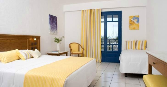 Sunt disponibile 224 camere. Oaspeții au la dispoziție serviciul de room service pentru a servi masa sau diverse băuturi. În camere există baie cu cadă sau duș ce are în dotare foehn și articole de toaletă gratuite. Camerele confortabile de la Chrissi Amoudia au pardoseală de gresie/ marmură, aer condiționat, Tv cu canale prin satelit și seif. Unele camere au balcon, cu vedere la piscină, unde oaspeții se pot relaxa în voie. Oaspeții au acces gratuit la serviciul Wi-fi în camere. Fiecare unitate de cazare are frigider.