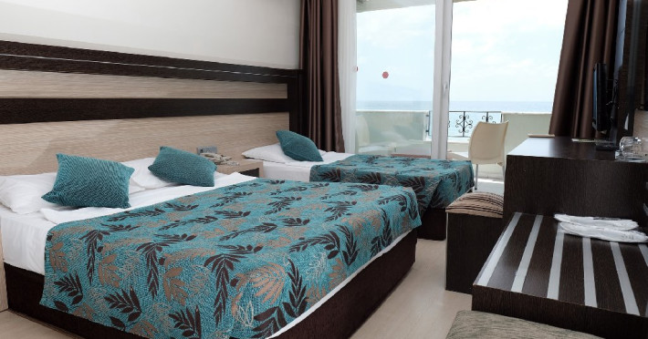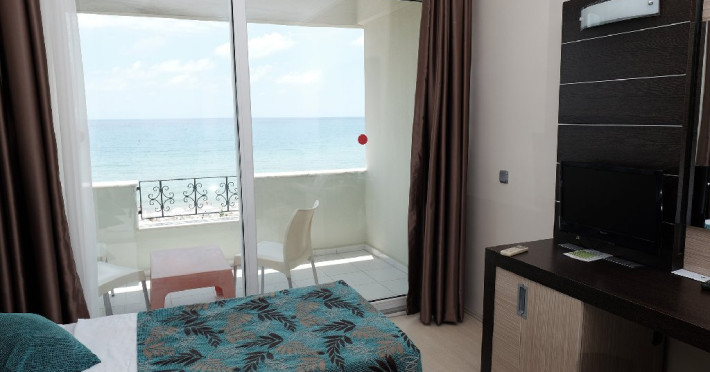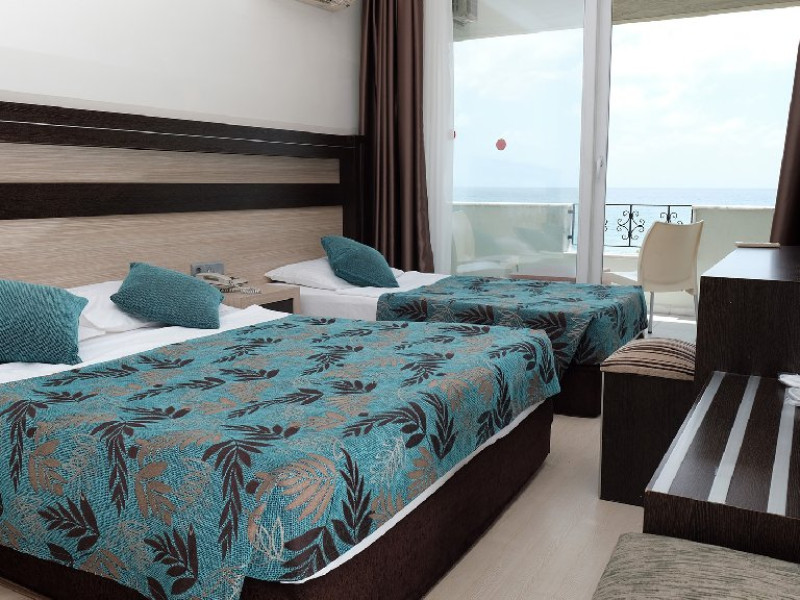 Facilitati camere: Hotelul are 44 de camere standard ce sunt dotate cu dotate cu aer conditionat, un TV, minibar si un balcon cu vedere la mare, baia privata include un uscator de par si un dus.