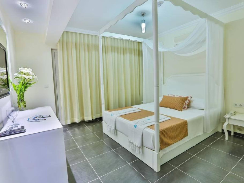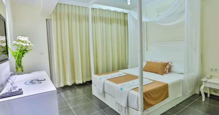 Acest hotel boutique cu 15 camere, pozitionat perfect, se afla pe o strada linistita chiar la intrarea in centrul pitoresc al orasului Kas. Majoritatea camerelor si zona de relaxare (meet & eat) din partea frontala a hotelului ofera o vedere uluitoare asupra frumosului oras Kas este imposibil sa nu te indragostesti de acest loc.Cea mai faimoasa strada din Kas, Uzun Carsi, unde se afla neasteptatul sarcofag monumental istoric, este la doar 20 de metri distanta. Aceasta este una dintre frumoasele strazi comerciale inguste si te conduce direct catre piata orasului si catre unul dintre cele doua porturi din Kas, unde se desfasoara viata de noapte in timpul verii.