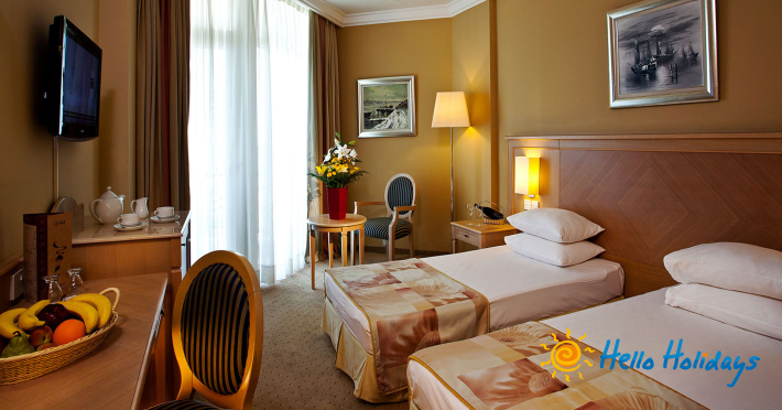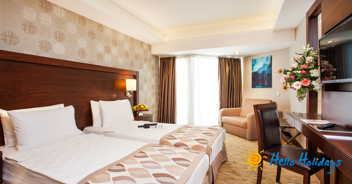 Camerele standard sunt dotate cu : balcon, satelit TV, minibar (1 sticla de apa/zi gratuit, alte produse sunt extra), telefon, aer conditionat, baie cu cabina de dus, uscator de par, mocheta, suprafata de 27m2, din 353 de camere 333 au vedere la mare, , 54 sunt interconectate, 2 camere cu facilitati pentru persoanele cu handicap.