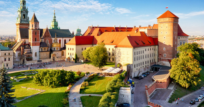 Polonia ne așteaptă! Pornim la drum după micul dejun, traversand Slovacia spre Donovaly (960m alt) cea mai populara statiune montana, situata in Parcul National Tatra Joasa. Aici ne vom opri pentru cateva fotografii, dupa care vom continua spre Cracovia, fosta capitala regala. Vizitam Castelul Wawel, unde vom admira Catedrala- (sec. XI-XIV) care imbina toate stilurile arhitectonice majore si care era odinioara locul ceremoniilor de incoronare a tuturor regilor Poloniei, iar azi “sanctuar national” si Castelul Regal renascentist, care se distinge prin aspectul sau monumental. Continuam cu Strada Kanonicza- cea mai veche din oras, care pastreaza integral aspectul medieval, Muzeul Arhidiecezei- casa in care a studiat Papa Ioan Paul II si Hotel Copernicus- unul dintre cele mai scumpe hoteluri din lume, care poarta numele marelui astronom si care a fost “resedinta sa temporara” in anii studentiei. Urmeaza Piata Centrala- cea mai mare piata medievala din Europa, cu Biserica Fecioarei Maria (sec.XIII) avand interesante vitralii de Wyspianski si Hala de Tesaturi (Sukiennice) numita si “piata de chihlimbar” unde vom avea timp liber pentru achizitionarea suvenirurilor locale. Cazare la Cracovia.