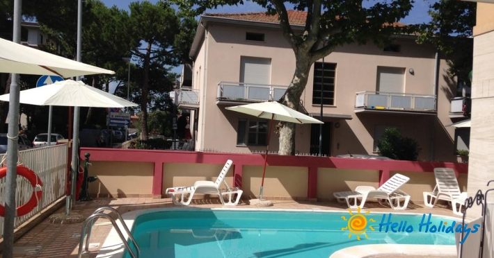Aron 3***- situat la 100 de metri de plaja in Viserbella di Rimini. Camere, pentru 2 persoane, cu: TV, aer conditionat(5€/zi/camera-se achita la