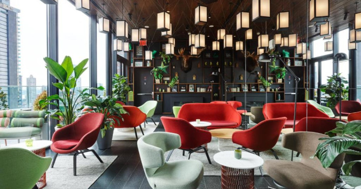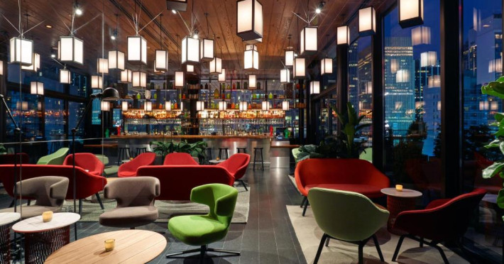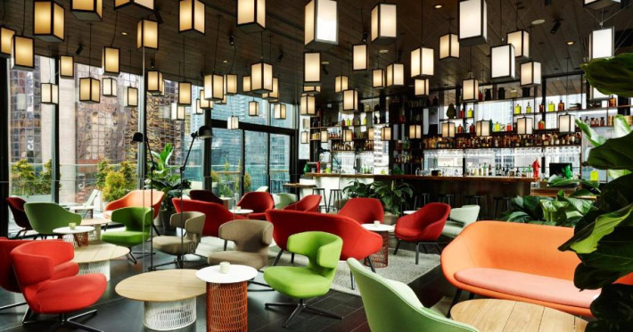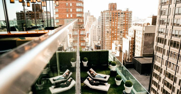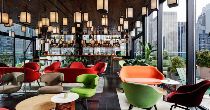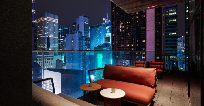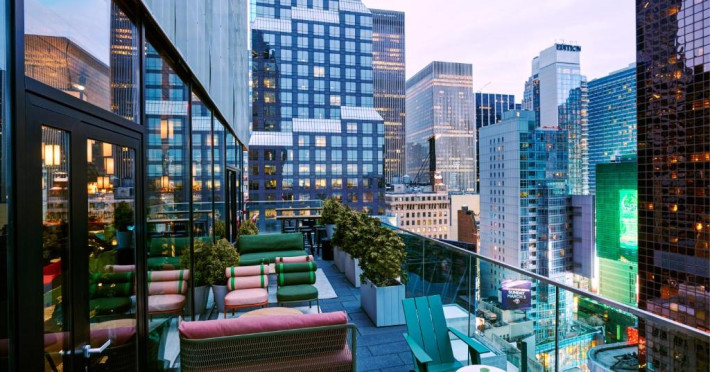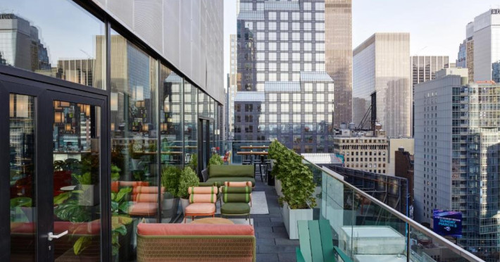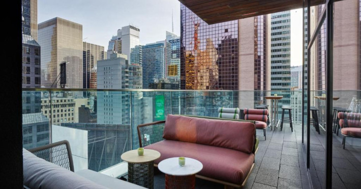 Trei terase in aer liber sunt disponibile la New York Times Square citizenM, care are un centru de fitness de ultimă generație, cu facilități de yoga. După antrenament, oaspeții se pot relaxa cu băuturi și vedere panoramică la oraș in barul exclusivist de pe acoperiș. Holul in stil living are o colecție de artă contemporană și mult spațiu pentru relaxare.