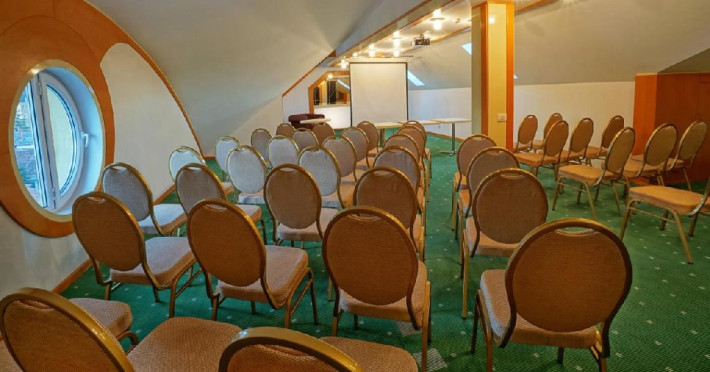 Sala de conferinta a hotelului, cu o capacitate de 40 locuri in aranjament teatru, asigura cadrul ideal pentru desfasurarea in cele mai bune conditii a evenimentelor business.