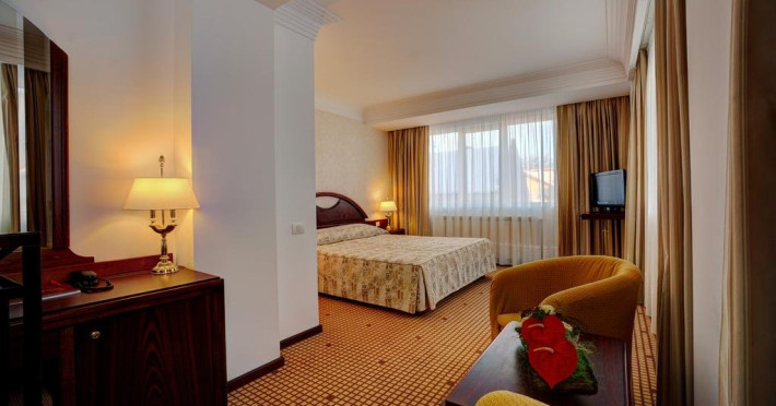Camerele Duble Deluxe au o suprafata de 26 mp, vedere atat catre curtea interioara, gradina, cat si catre oras, in functie de disponibilitate