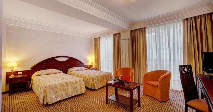 Camerele Twin Confort au au o suprafata de 29 mp., vedere catre curtea interioara si gradina.