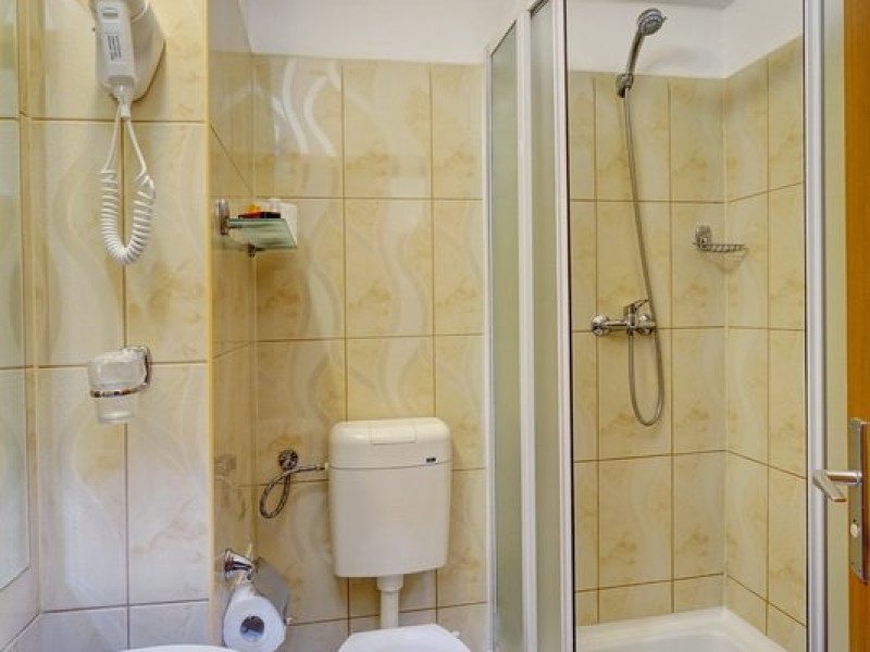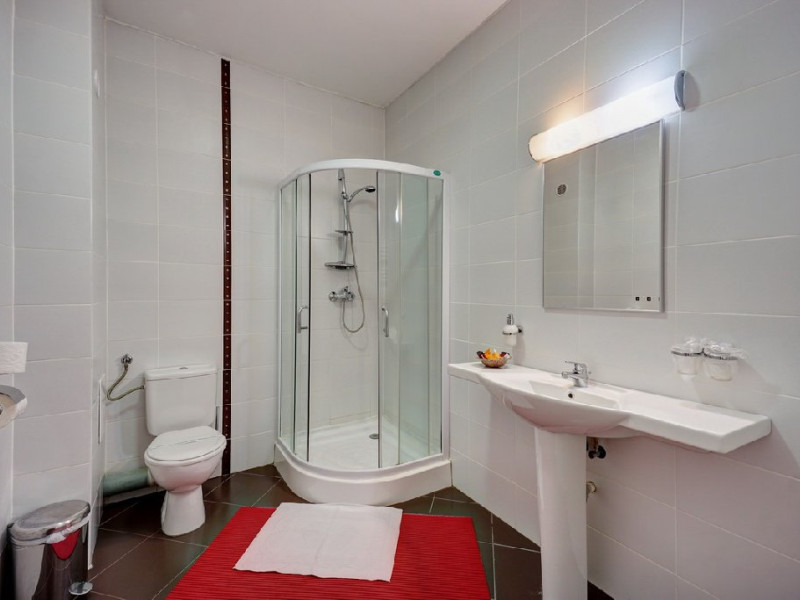 Camerele sunt dotate cu acces cu cartela, baie proprie cu dus sau cada, televizor, telefon, balcon (mai putin camerele aflate la etajul IV).