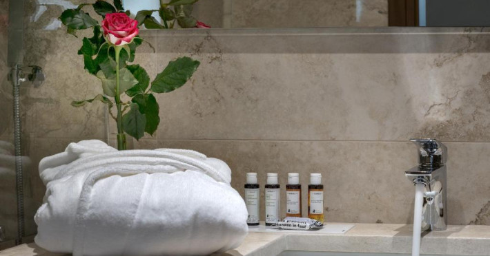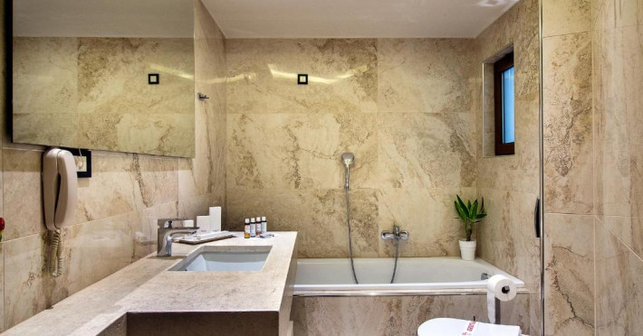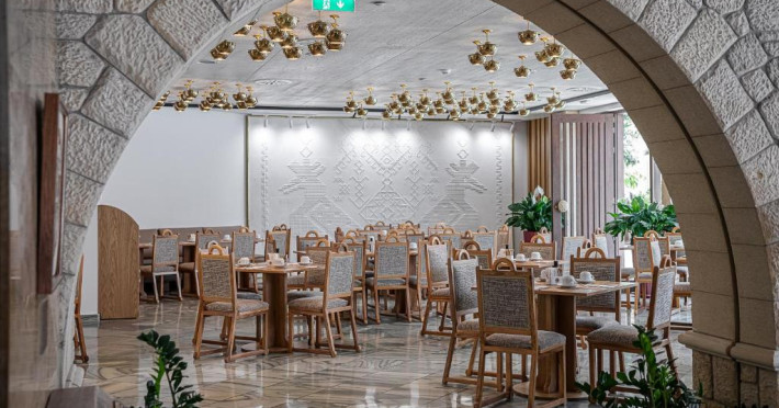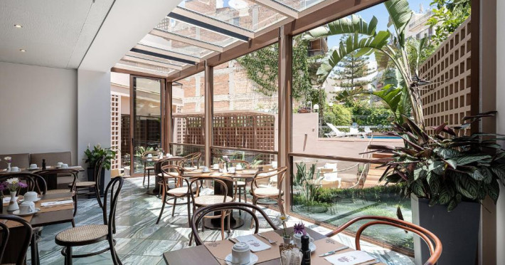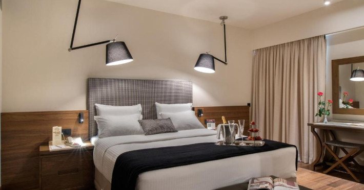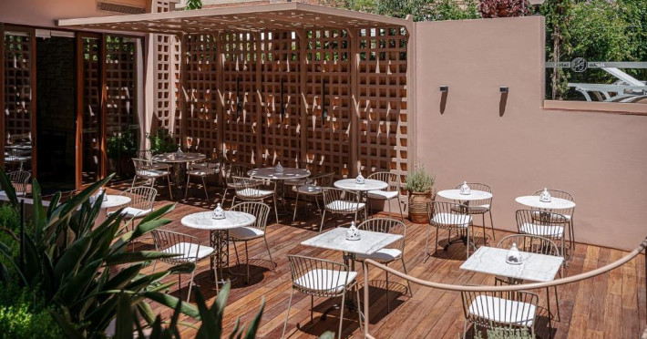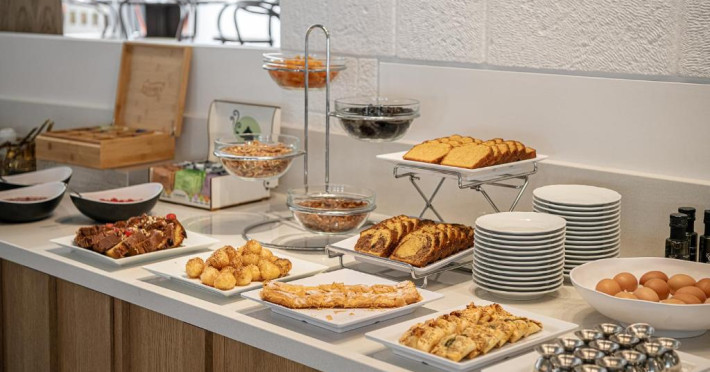 Micul dejun constă dintr-un bufet cu o mare varietate de mancăruri calde si reci si salate de fructe de sezon. Restaurantul serveste preparate traditionale din Creta. Barul interior al hotelului are un semineu si o arcadă de piatră.