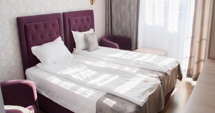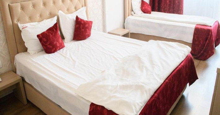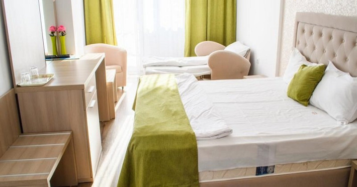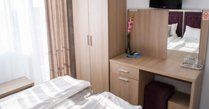 Camerele duble au 20 mp si sunt dotate cu baie cu dus, TV, minibar, aer conditionat, internet, uscator de par. O parte din camere au balcon, repartizarea pe camere se efectueaza la receptia hotelului.