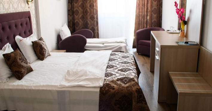 Camerele triple au 25 mp, sunt dotate cu baie cu dus, TV, minibar, aer conditionat, internet, uscator de par, au un pat matrimonial si o canapea de o persoana extensibila.