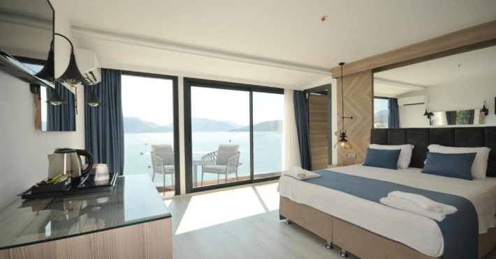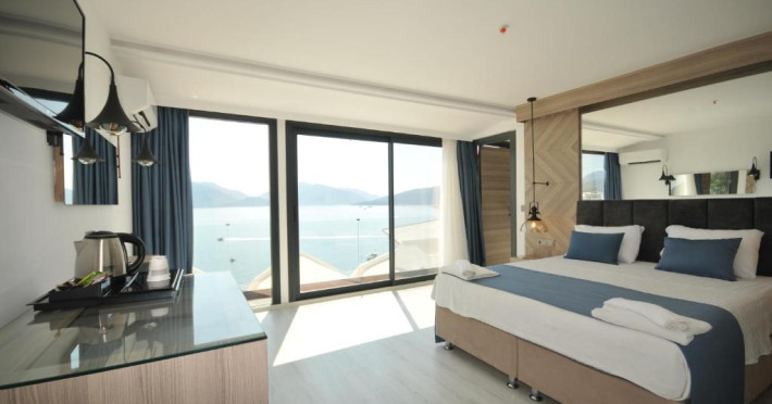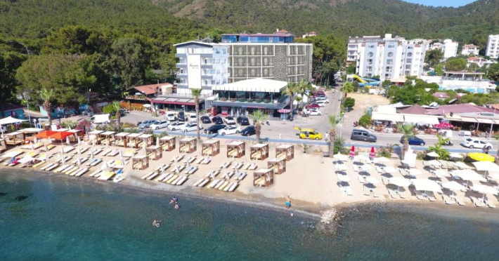 Situat pe propria plajă de nisip din Marmaris, acest hotel are o piscină in aer liber si un centru de fitness. Camerele au aer conditionat, balcon si zonă de relaxare.