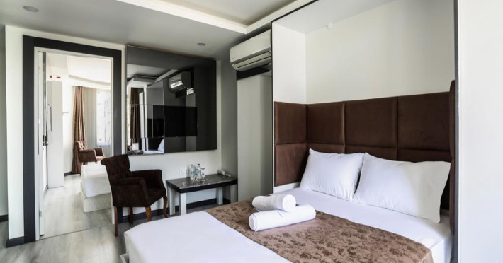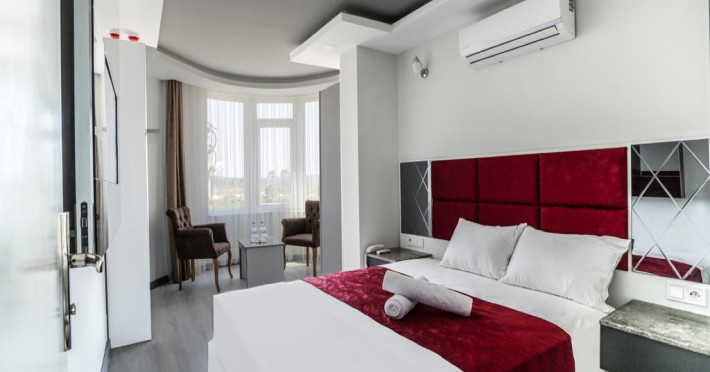 baie, uscator de par, articole de toaleta, vedere la gradina/ piscina sau imprejurimi, telefon, seif, aer conditionat (contra cost, 6 EUR/ zi), incalzire, dulap