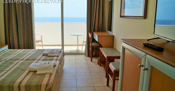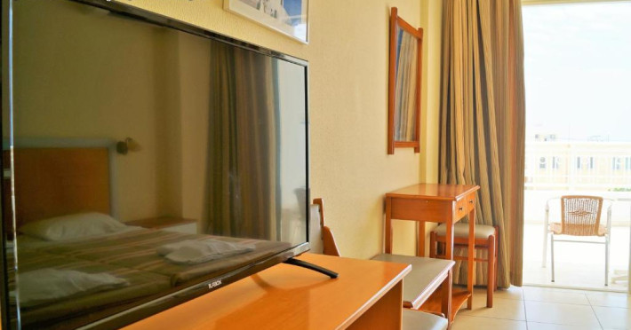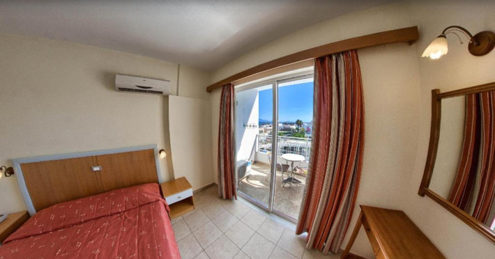 Toate camerele au ferestre mari, din poate pană in tavan, și un balcon cu vedere la piscină, Marea Egee sau munte. Fiecare este dotată cu TV cu canale prin satelit și frigider. Baia privată include un uscător de păr.