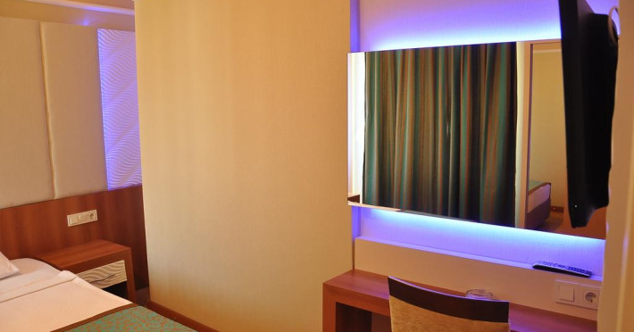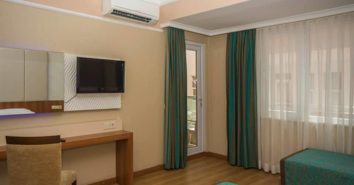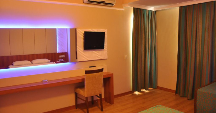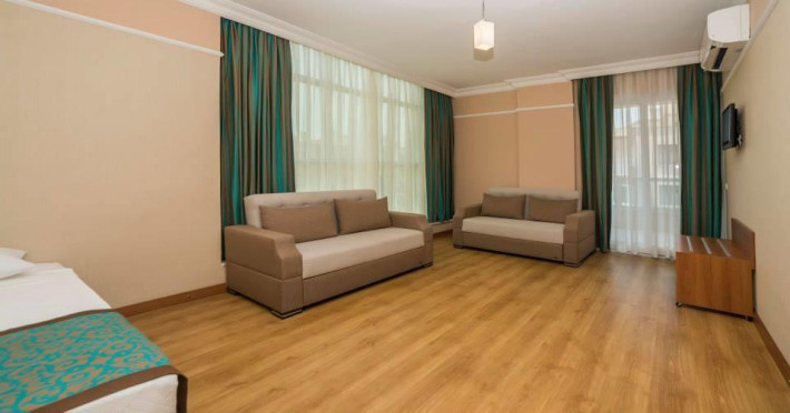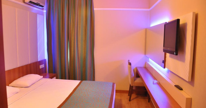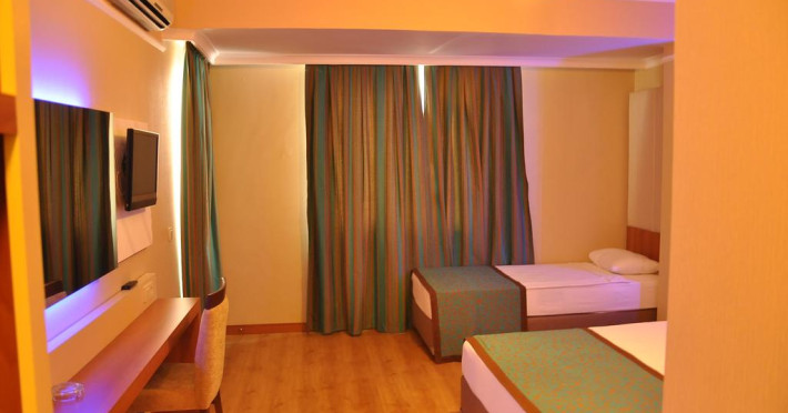 Sunt disponibile 60 camere. Unele camere au balcon cu vedere la mare sau la piscină. În camere există baie cu duș prevăzută cu foehn. Camerele luminoase de la Cleopatra Tac Hotel & Apart sunt dotate cu parchet, aer condiționat, Tv cu canale prin satelit și seif. Fiecare cameră dispune de cană-fierbător. Toate camerele spațioase de la Cleopatra Tac Hotel & Apart au zonă de relaxare cu canapea, ceea ce oferă un plus de confort. Fiecare unitate de cazare include o chicinetă utilată, inclusiv cu ustensile de bucătărie. De asemenea, este disponibilă o zonă de luat masa. Proprietatea oferă camere pentru familie cu o suprafață mai mare și un număr mai mare de paturi față de cele standard. Se pot rezerva de asemenea camere pentru nefumători.