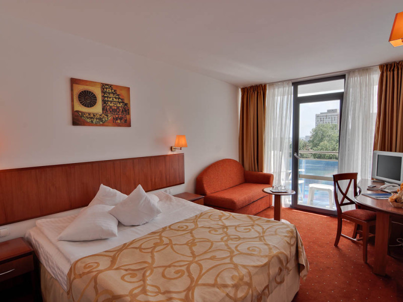 Hotelul Cleopatra este situat la 20 m de plaja. Facilitati hotel: receptie 24 de ore, bar, lift, ziare, camera de bagaje, restaurant, terasa, internet wireless, parcare cu plata (in limita disponibilitatilor), centru fitness, piscina exterioara (pentru adulti si copii), masaj, sauna, jacuzzi, centru spa, sala de conferinte (capacitate 100 locuri), business centre, room service, zona pentru fumatori, camere pentru nefumatori, servicii de lustruire pantofi, loc de joaca pentru copii. Hotelul dispune de 253 camere duble si 24 apartamente. Facilitati camere: aer conditionat, TV, minibar, seif, baie cu cada (numai in apartamente), baie cu dus, balcon, internet wireless, uscator de par, telefon, sistem de acces pe baza de cartela.Datorita dinamicitatii domeniului disponibilitatea ofertelor se modifica de la un moment la altul. De aceea ofertele sunt valabile in limita locurilor disponibile. Agentia nu este responsabila pentru eventualele neconcordante care pot aparea intre informatiile privind tarifele si alte detalii din site si informatiile primite in agentie. In aceste cazuri vor avea prioritate, intotdeauna, informatiile primite in agentie.