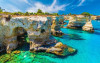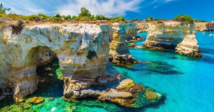 - OSTUNI (19 €): Ostuni este una din „bijuteriile” Pugliei, cu o multime de clădiri văruite in alb, amplasate strategic pe un deal înconjurat de ziduri defensive puternice, la doar 8 km de Marea Adriatică. Orașul medieval a fost construit fără un plan ,astfel ca rețeaua de străzi este un labirint de alei, scări și arcade, creând iluzia că întregul oraș este ridicat dintr-o singură bucata. Clădirile au fost construite una peste alta, iar arcadele susțin casele pe care le leagă, compensând lipsa unor fundații puternice. Piazza della Liberta este cea mai mare piață din Ostuni oferid unele repere magnifice: Palazzo San Francesco, fostă mănăstire ce găzduiește acum Primăria, alături de Biserica San Francesco si coloana din Sant’Oronzo. Catedrala cu fațada sa elegantă este un amestec fascinant de elemente bizantine, romanice și gotice tarzii, situatie rară în Puglia, unde majoritatea bisericilor sunt romane austere sau baroce abundent ornamentate. Piazzetta Cattedrale găzduiește încă două clădiri, Palatul Episcopal și Palatul Seminarului, conectate între ele prin superbul Arco di Scoppa.