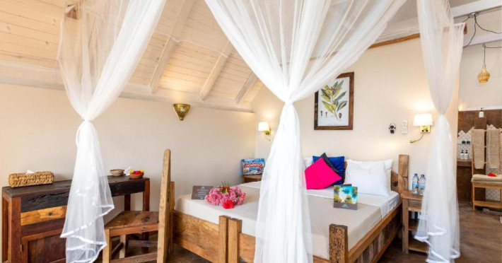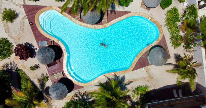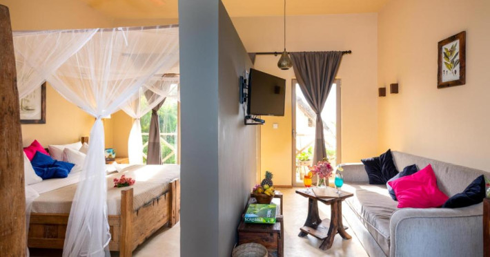 Proprietatea dispune de patru vile exclusiviste si doua apartamente. Toate sunt echipate confortabil, decorate in stil swahili, cu o nota de modernitate europeana. Fiecare dintre ele ofera un mediu confortabil si de lux pentru relaxare. Trei vile au capacitate de pana la patru persoane. A patra vila este impartita in apartamente duble separate, cu un dormitor si un living la parter si un apartament similar la primul etaj. Toate vilele au doua bai – una cu dus si cealalta cu dus si cada. Fiecare dintre ele are, de asemenea, doua balcoane cu vedere directa la ocean. Exista, de asemenea, un living confortabil cu TV si o chicineta completa cu frigider, plita electrica, vase si tacamuri. Apartamentele dispun de chicineta utilata, baie, living cu televizor si un dormitor confortabil cu balcon si vedere la ocean.