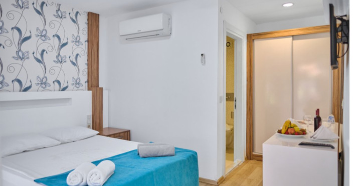 Facilitati hotel: Hotelul pune la dispozitia turistilor: receptie, restaurant, restaurant a la carte, patiserie, bar la piscina, piscina exterioara, piscina pentru copii, baie turceasca, WIFI gratuit in camera si in spatiile comune, animatie, animatie pentru copii (de 2 ori pe saptamana), darts, boccia, loc de joaca pentru copii, centru SPA, coafor, piscina pentru copii, babby sitter.