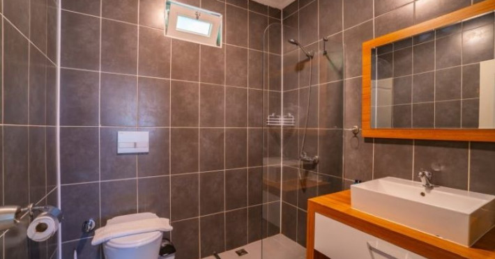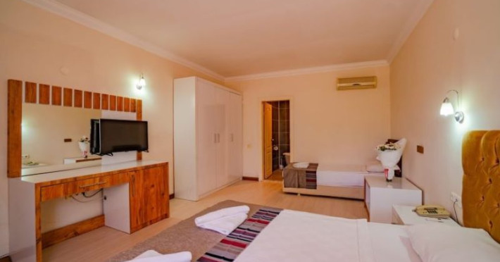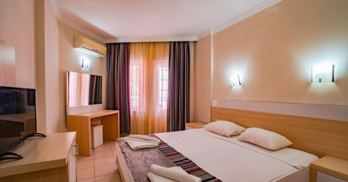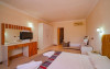 Fiecare cameră este dotată cu aer condiționat, televizor, oglindă cosmetică, baie prevăzută cu cabină de duș și uscător de păr, seif și un balcon privat.