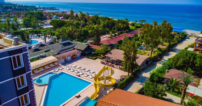 Descriere: Hotelul situat la doar 50 de metri distanta de plaja Cleopatra, cu nisip fin si 900 de metri distanta de centrul orasului, ofera o gradina verde, piscina si tobogan.Localizare: Hotelul este localizat la 14 km distanta de centrul orasului Alanya, 60 km distanta de aeroportul Gazipasa, Alanya si 111 km de aeroportul din Antalya.