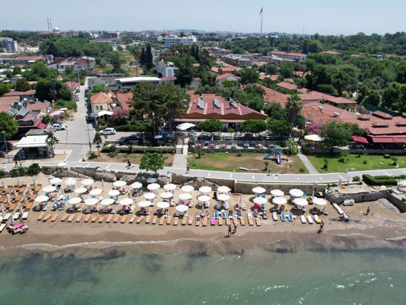 Descriere: Hotelul situat in imediata apropiere a plajei, este contruit intr-o gradina frumoasa, a carei suprafata este de 3000 mp. Hotelul este format din 2 cladiri principale si 1 cladire anexa.Localizare: Hotelul este situat in Side, la aproximativ 50 de metri de plaja si 65 km distanta fata de Aeroportul International Antalya.