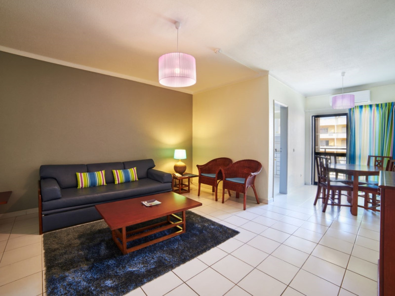 The Smartline Club Amarilis is comprising by 1 bedroom and 2 bedroom apartments accomodation, which makes it suitable for families looking for self catering or all inclusive holidays. All the rooms are designed to provide maximum comfort to guests. They feature a kitchen and it's utensils, flat screen and cable TV, air conditioning (living room), balcony with table and chairs, safety deposit box*, phone*, fully equiped bathroom with shower and bath amenities.