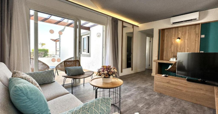 Club Caleta Dorada oferă apartamente cu terasă privată și TV prin satelit, la un cost suplimentar. Există o canapea extensibilă, cu frigider.