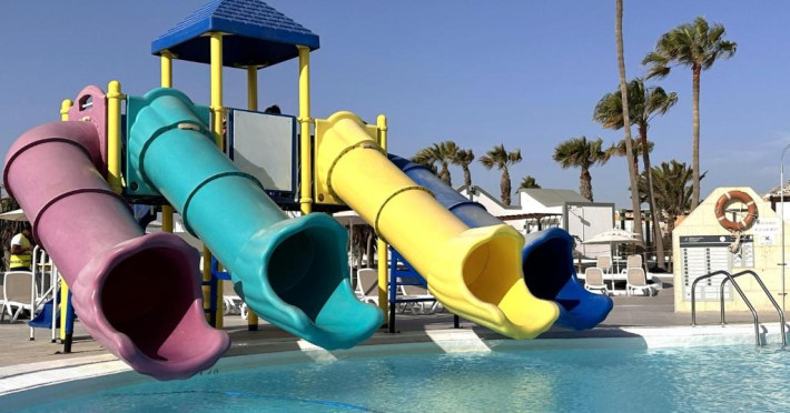 Există un mic parc acvatic și o piscină separată pentru copii. Complexul are, de asemenea, un restaurant tip bufet și baruri langă piscină.