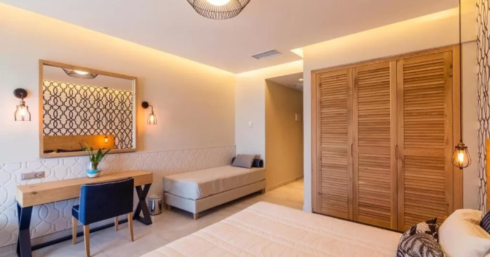 Sunt disponibile 320 camere. Camerele confortabile de la Club Calimera Sirens Beach au pardoseală de gresie/ marmură, aer condiționat, Tv cu canale prin satelit și seif. În camere există baie cu cadă sau duș ce are în dotare foehn și articole de toaletă gratuite. Unele camere au balcon cu vedere la mare sau la piscină. Oaspeții au acces gratuit la serviciul Wi-fi în camere. Curățenia in cameră se face zilnic. Fiecare unitate de cazare are frigider.