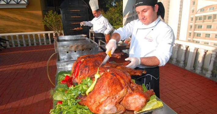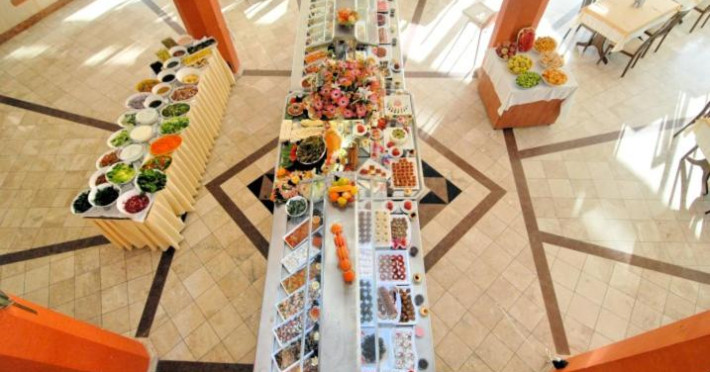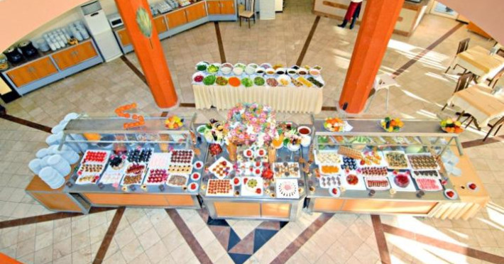 Există diverse locuri unde se poate lua masa: o sală de mese și un bar. Clienților le stă la dispoziție un restaurant pentru nefumători cu aer condiționat, cu scaune inalte pentru copii și o zonă separată pentru nefumători. La centrul de cazare se oferă spre rezervare regim all inclusive. Clienții de la all inclusive se bucură de oferte speciale, ca de exemplu gustări, de asemenea există o paletă diversă de băuturi alcoolice și nealcoolice, precum și minibar. Un bufet delicios și bogat iși așteaptă clienții la micul dejun, pranz și cină.