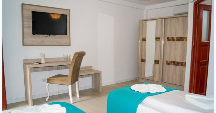 - Camerele duble 3*** modern sunt situate in vile si sunt echipate cu doua paturi twin (90x200), au baie cu cabina de dus si cosmetice hoteliere, nu au balcon.