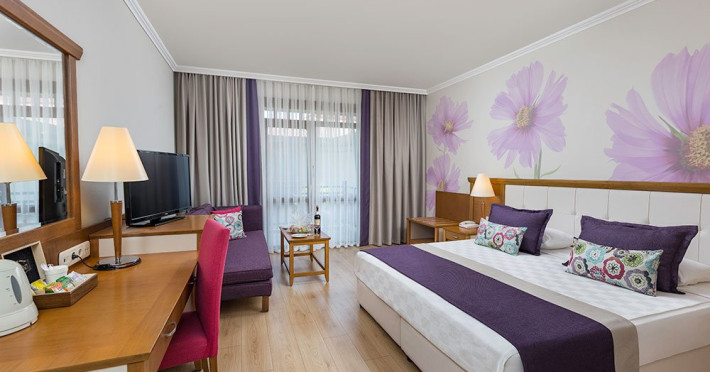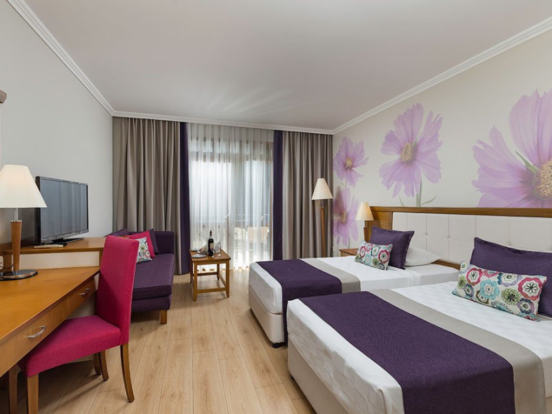 Facilitati hotel: Hotelul ofera oaspetilor sai urmatoarele facilitati: restaurant principal, 3 restaurante a la carte, cafenea, discoteca, Sali de conferinta, amfiteatru, piscina interioara, piscina exterioara pentru adulti si copii, discoteca, muzica live, sauna, baie turceasca, centru fitness, internet wireless, teren de tenis, volei pe plaja, darts, tenis de masa, mini club, loc de joaca pentru copii, piscina.