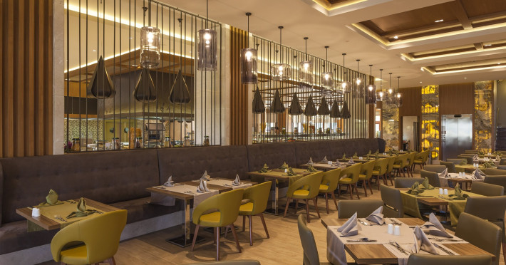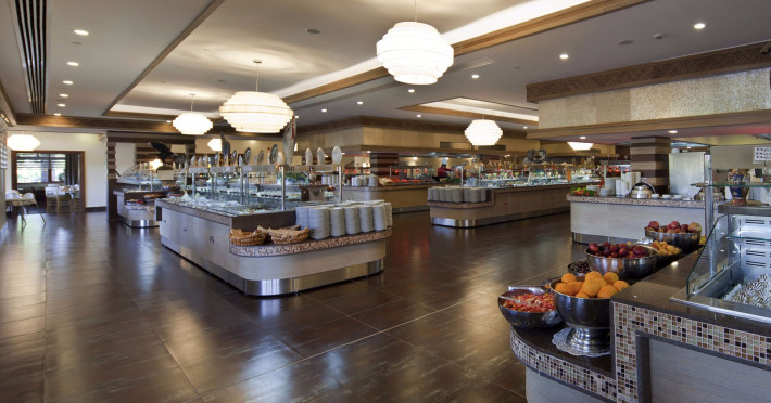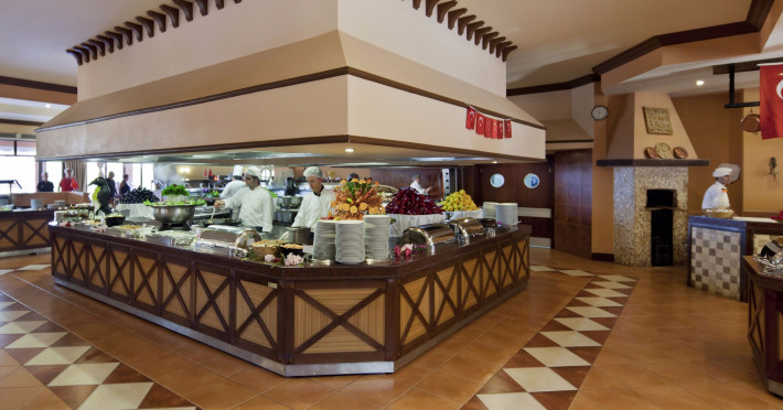 La Club Grand Aqua oaspeții au la dispoziție 3 restaurante unde pot savura mâncăruri delicioase, în stil bufet sau à la carte. Preparate din bucătăria internațională, italiană, precum și preparate pescărești așteaptă să fie degustate în fiecare zi la micul dejun, prânz și cină. Masa poate fi servită atât în interior, cît si în aer liber, pe terasă, în funcție de vreme. 3 baruri, dintre care unul la piscină și unul pe plajă, sunt disponibile cu o ofertă variată de băuturi răcoritoare și alcoolice.