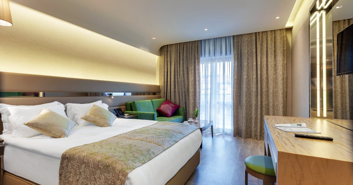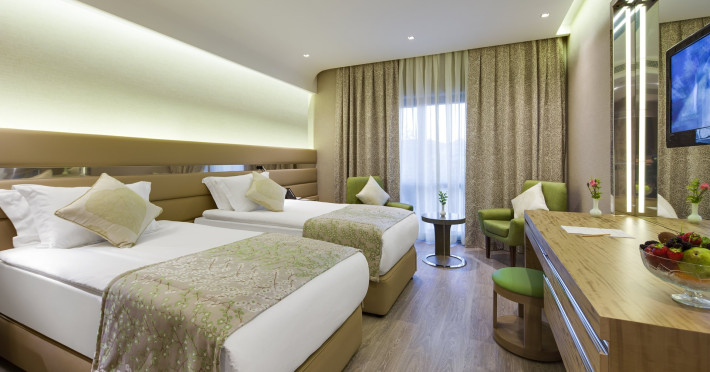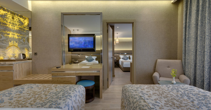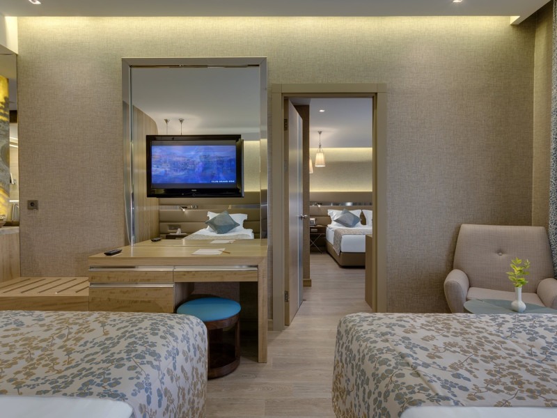 Sunt disponibile 234 camere. În camere există baie cu cadă sau duș prevăzută cu foehn. Camerele de la Club Grand Aqua sunt dotate cu aer condiționat, Tv cu canale prin satelit și seif. Oaspeții au la dispoziție serviciul de room service pentru a servi masa sau diverse băuturi. Oaspeții au acces gratuit la serviciul Wi-fi în camere. Curățenia in cameră se face zilnic.