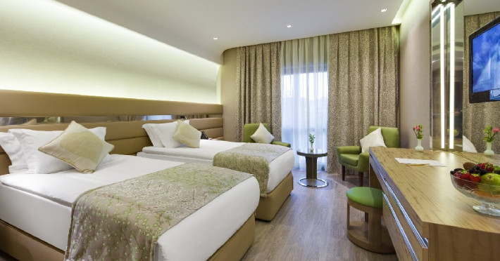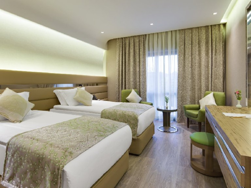 Camerele hotelului dispun de: telefon, TV satelit, minibar, seif, aer conditionat centralizat, internet wireless.